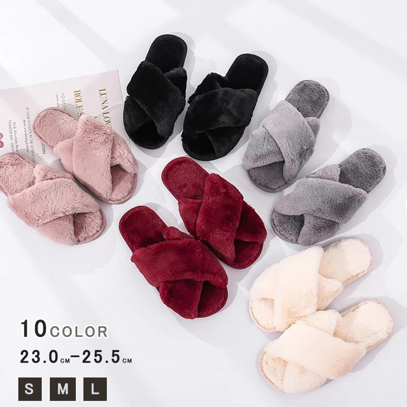 ルームシューズ クロスベルト サンダル スリッパ レディース 靴 ファーサンダル ファースリッパ フラットシューズ あったか おしゃれ ボア ふわふわ 柔らか 冬 防寒 もこもこ