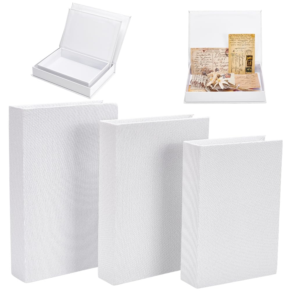 3個 3サイズ 麻 装飾 収納 ボックス セット 本 フェイク ブック スタイル オーガナイザー 写真 記念品 ホーム デコレーション ホワイト トーン 22.2~2715.4~1 ニュートラル