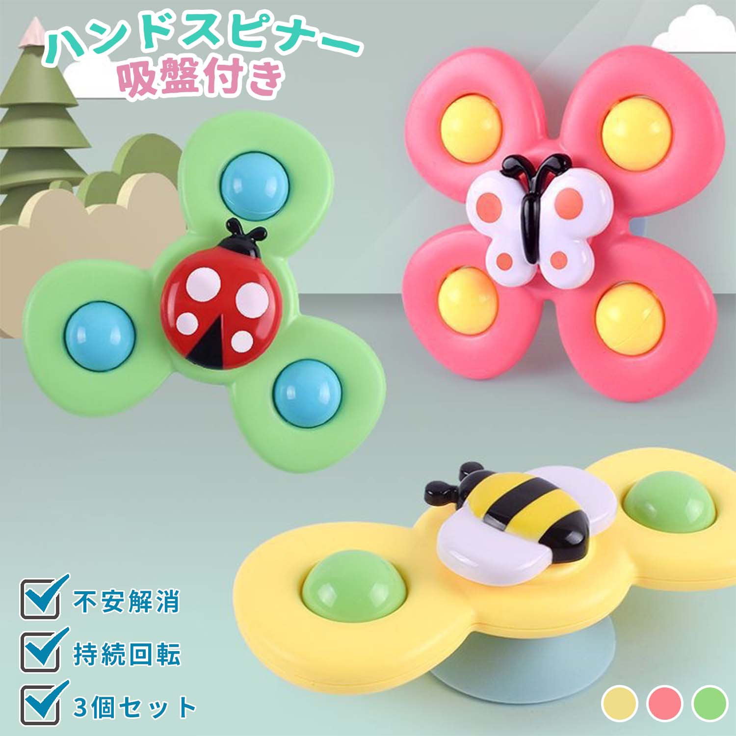 ハンドスピナー 3個セット 赤ちゃん おもちゃ 0歳 6か月 1歳 男の子 女の子 2歳 3歳 4歳 知育玩具 カラカラ 音が鳴る お出かけ 風車おもちゃ 水遊び ベビー かわ お風呂