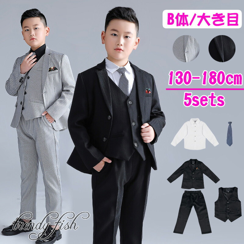 男の子 卒業式 スーツ b体 大きいサイズ ゆったりサイズ 小学生 ぽっちゃり 黒 グレー ネクタイ付き 結婚式 七五三 フォーマル キッズスーツ ジュニア 韓国 こどもスーツ