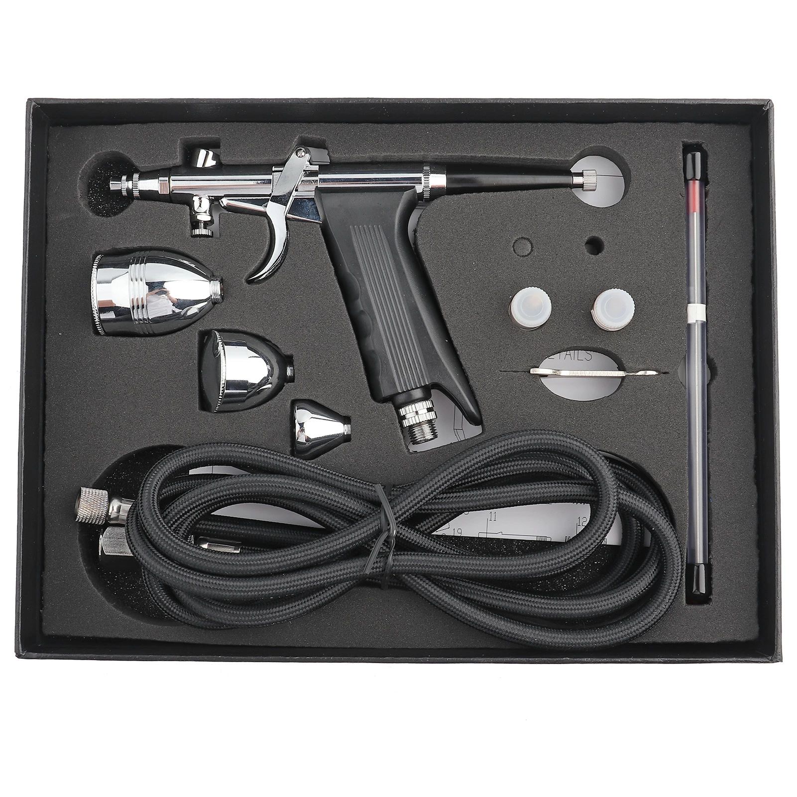 エアブラシセット塗装エアブラシ スプレーガンセット重力式 多サイズカップ付き3種類ノズル 0.3mm 0.8mm 高精度持ち 0.5mm