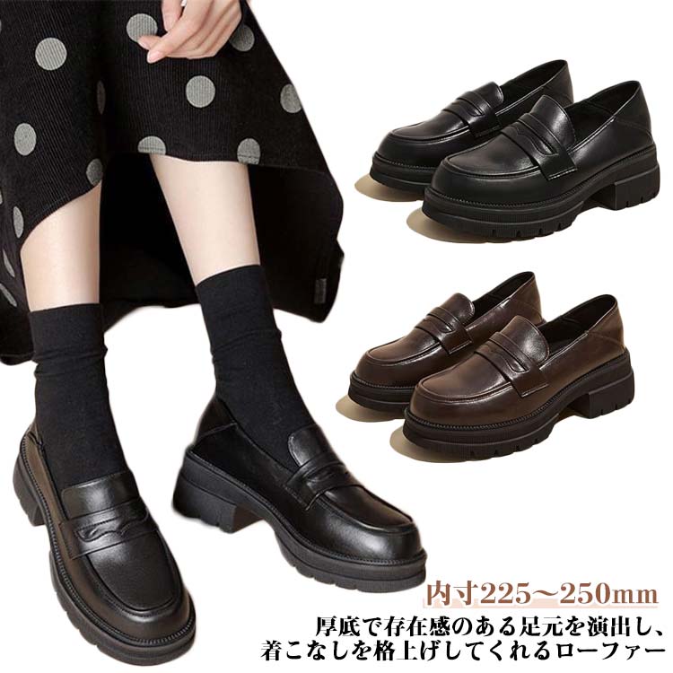 内寸225~250 厚底ローファー 美脚 学生靴 履きやすい 滑り止め