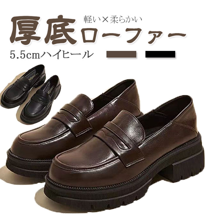 5.5ヒール レディース ローファー 厚底 学生 痛くない フォーマルシューズ 女子 発表会 靴 学生靴 卒業式 入学式 通学 結婚式 演奏会 厚底ローファー フォーマル靴 大人カジュアル