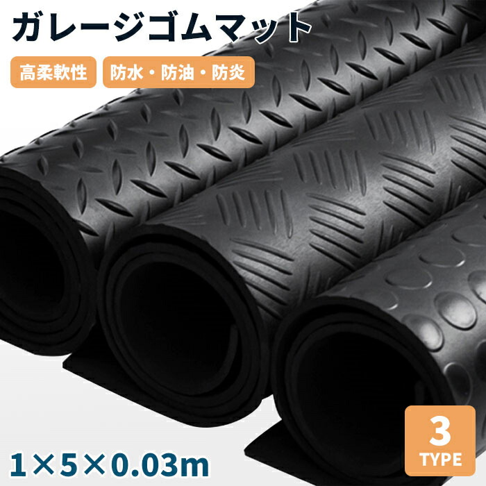 ゴムマット 屋外 両面構造 カット可能 滑り止め 防音 防振 耐久性が良い 5000*1000*3mm 水洗い 重量約18.8kg 合成ゴム ガレージフロアマット 業務用 駐車場 工事 ガレー 工業用
