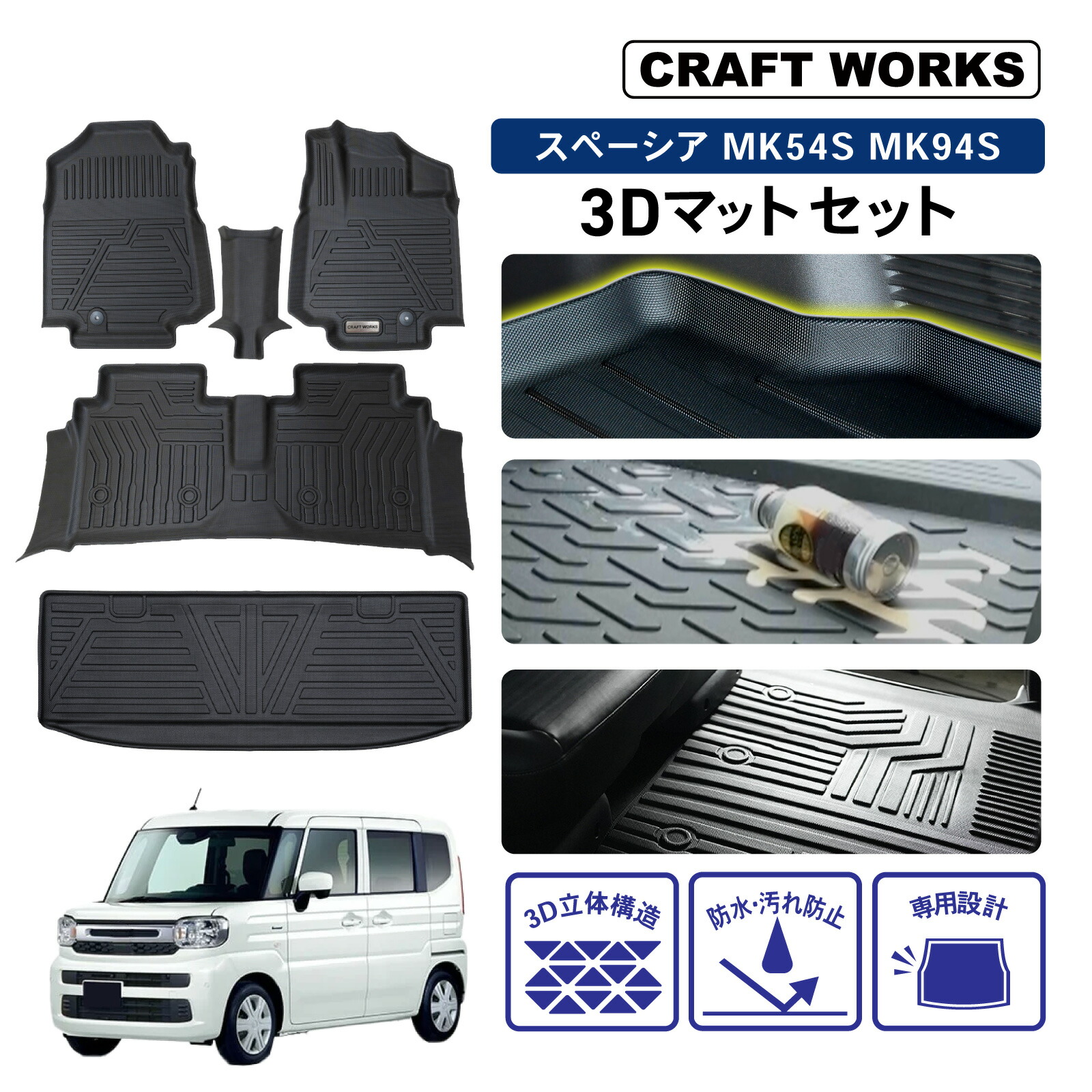 スペーシア ギア カスタム MK94S フロアマット 3D フロア マット 防水 防汚 汚れ 防止 ハイブリッド G X ラバー ラゲッジ セーフティパッケージ 装着車 専用 新型 ア 内装