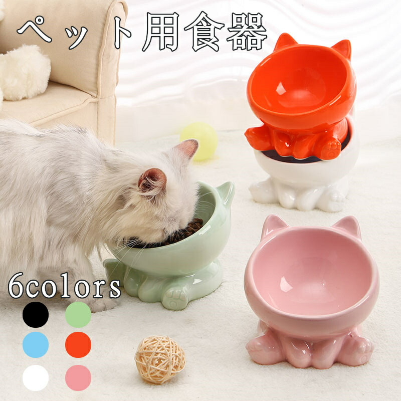 ペット用品 猫用フードボウル セラミック製 斜め高足 デザイン かわいい 首保護付き 猫皿 犬用ボウル ご飯皿 ペット食器 犬猫対応 転倒防止 おしゃれ 猫餌入れ 食器台付き 健 猫用フードディッシュ