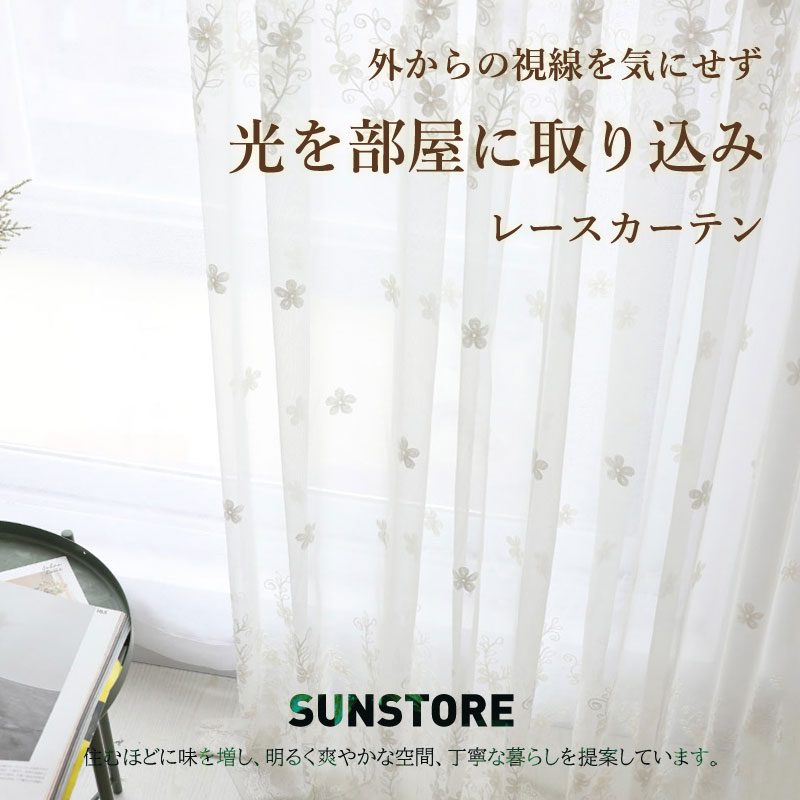 繊細な刺繍や透け感が美しい 編目を細かく織り上げる レースカーテン 北欧 おしゃれ フック付き 可愛い 採光 プライバシーカット 日差し 洗える かわいい 出窓 高級感 ナチュラル 幅10 エレガント