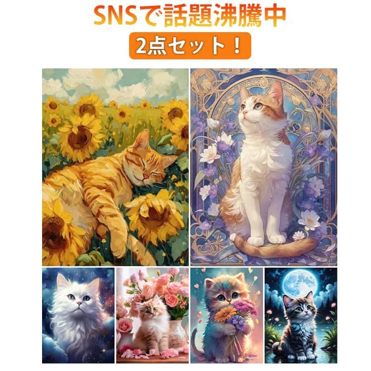 キラキラビーズアート 刺繍 ダイヤモンドアート 猫 キャンバス アート フレーム 刺繍キット ビーズアート ビーズ ビーズ刺繍 キット インテリア 2点セット ダイヤモン DIY