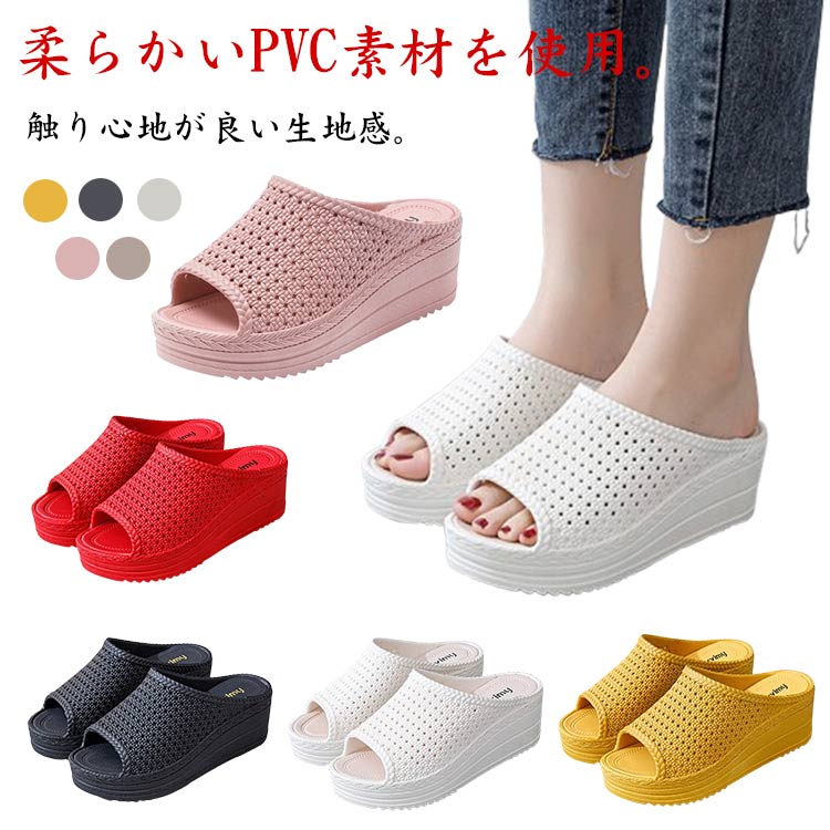 サンダル ミュール 厚底 ヒール レディース ウェッジソール 痛くない 歩きやすい ウエッジ 美脚 柔らかい 滑り止め スリッパ 無地 シンプル 室内用 夏 ブラック かわいい