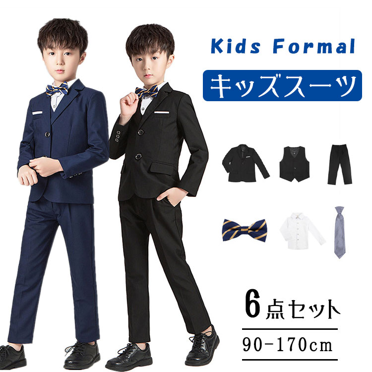 フォーマルスーツ キッズ 男の子 入学式 卒業式 6点セット 7点セット 子供スーツ セットアップ ジャケット ベスト ズボン パンツ シャツ 蝶ネクタイ シングルボタン キッズフォーマル ネクタイ