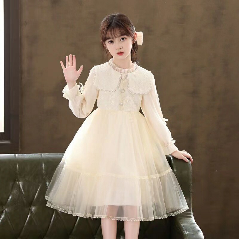 子供ドレス チュールワンピース 春秋 女の子 長袖 ガールズ ドレス スカート レース 子どもワンピース ピアノ 発表会 結婚式 卒業式 入学式 卒園式 入園式 パーティードレス お姫様 プレ 演奏会