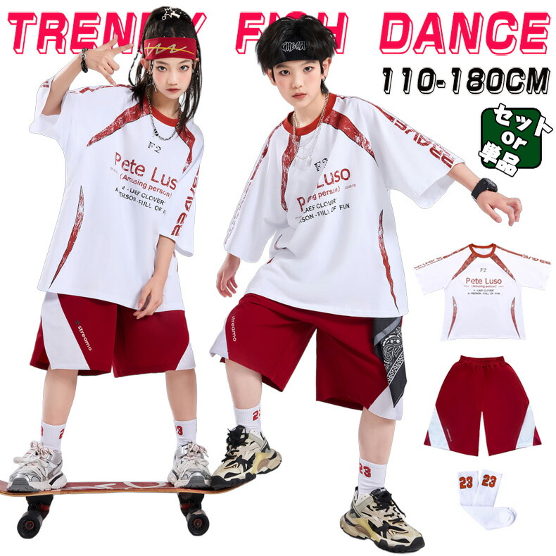 ホワイト レッド ダンス 衣装 キッズ セットアップ 韓国 k-pop ヒップホップ 女の子 男の子 かっこいい ゆったり 半袖 Tシャツ トップス 短パン ショーツ レジャー 子供服 ステ スポーツ