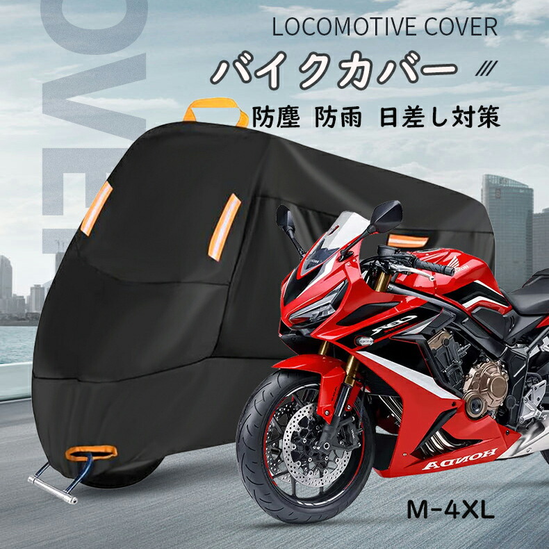 バイクカバー 210D 厚手 車体カバー 防水 耐熱 オートバイカバー 反射テープ 盗難防止ロック穴 大型 破れにくい 超撥水 紫外線防止 UVカット 防風 防埃 防雪 バイク用レインカバー 収 防雨