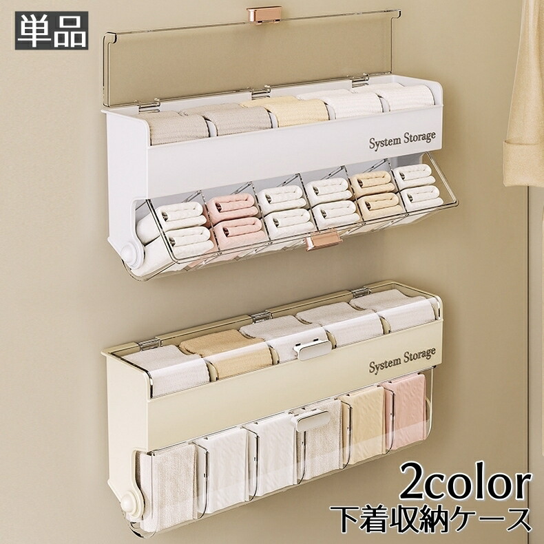 下着収納ケース 収納ボックス 壁掛け 粘着式 靴下収納 蓋付き 仕切りケース 整理整頓 スッキリ くつ下 ショーツ パンツ パンティ 肌着 インナー 小物入れ 押入れ タンス 日用品 生 クローゼット