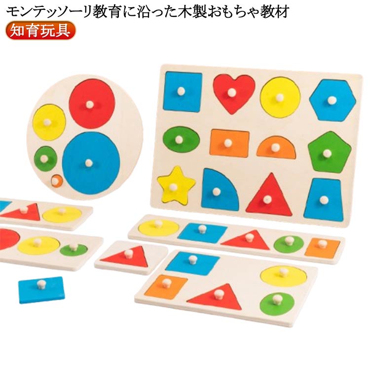 円形 幼児 はめ込みパズル 型はめパズル 図形の型はめパズル 木製 形あわせ モンテッソーリ 型はめ 幾何認知 三角 四角 木のおもちゃ