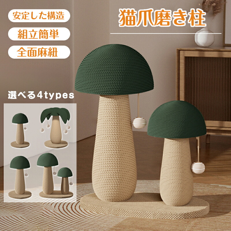 猫爪とぎポール スクラッチポール キノコスタイル猫爪研ぎポ一ル 全面麻紐 爪研ぎポール 天然サイザル麻 長持ち 縦置き型 キノコスタイル 組立簡単 運動不足解消 屑が落ちない