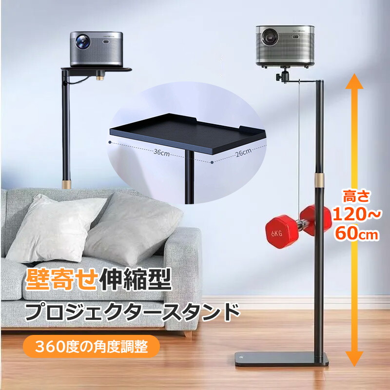 伸縮型 プロジェクタースタンド プロジェクター台 プロジェクター スタンド 床置伸縮型 一脚型 雲台 トレイ型 壁寄せ型 卓上型 角度無段階調整 角度自由 省スペース 耐荷重5 高さ調整可能160cm