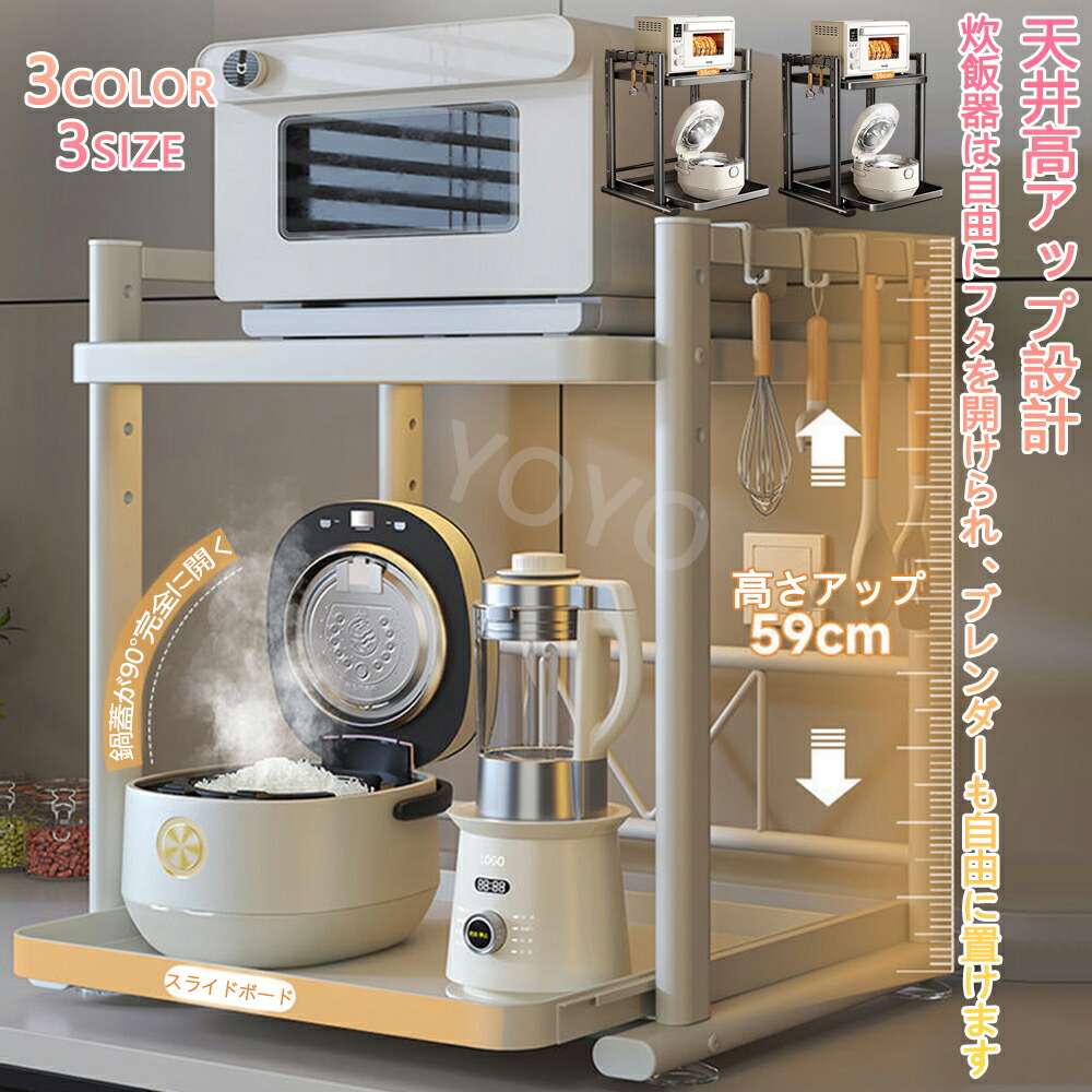 レンジ上ラック レンジラック キッチンラック 伸縮式 棚板高さ調節可 トースターラック レンジ置き台 オーブントースター 電子レンジラック 収納 キッチン 棚 おしゃれ 引き出し 省スペース 隙間収納