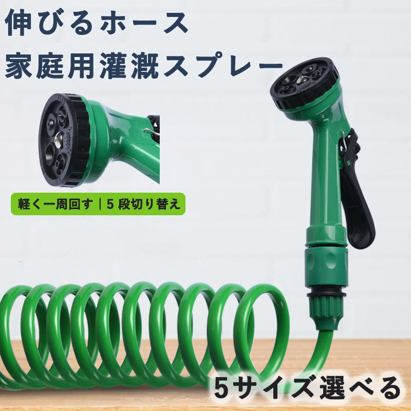コイルホース 伸びるホース 7.5 10 15 20 30 洗車 散水ノズル 家庭用灌漑スプレー 7パターン 柔軟性 伸縮性 お庭の水やり 園芸 ガーデニング 庭 洗車 掃除用
