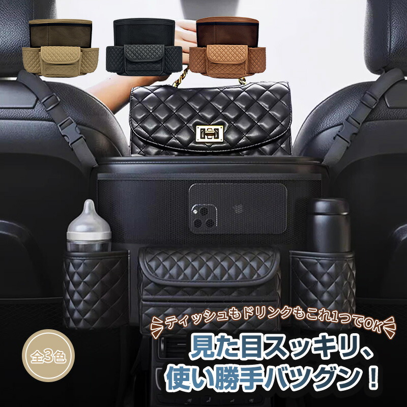 【1年間保証】前席間にぴったりフィット!ティッシュもドリンクも小物もまとめてスッキリ♪