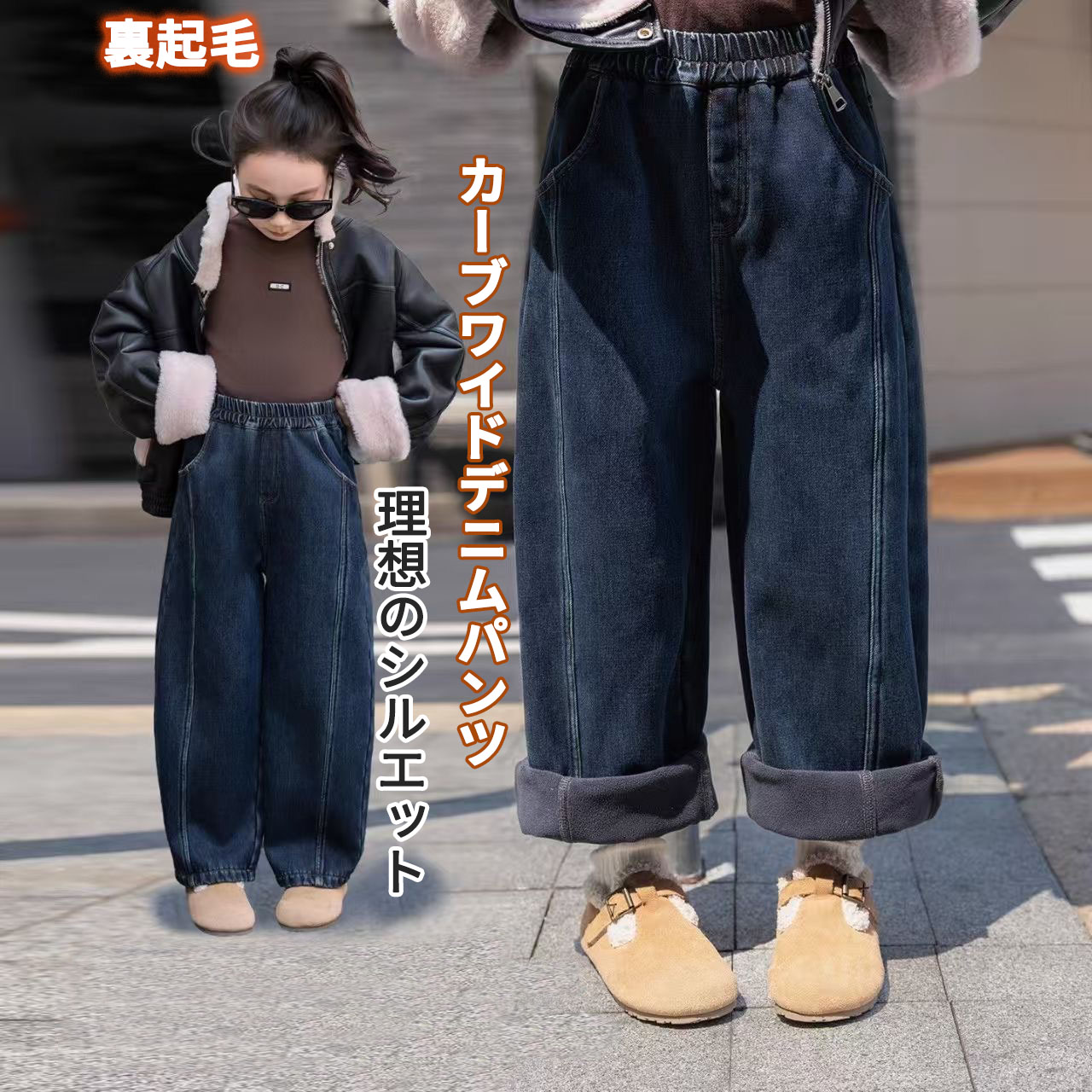 裏起毛 パンツ デニムパンツ カーブパンツ キッズ 女の子 ボトムス バレルレッグパンツ コクーンパンツ デニム ワイドパンツ 子供服 子ども こども ジーパン ウエストゴム ゆったり スト ジーンズ