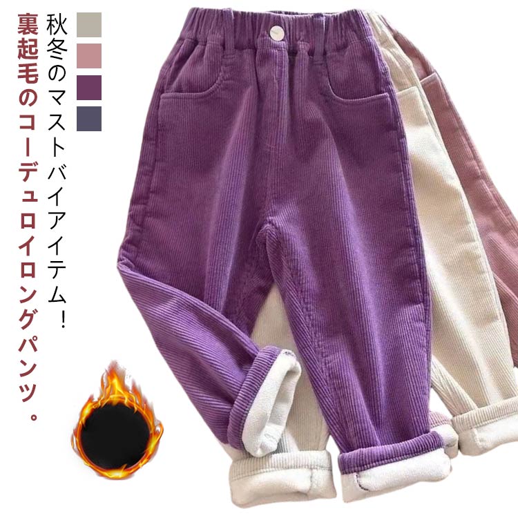 裏起毛 ワイドパンツガールズ 裏起毛 コーデュロイパンツ リラックスパンツ 子供服子ども服 こども あったか ボトムス ジュニア 女の子 あったか 通園 通学