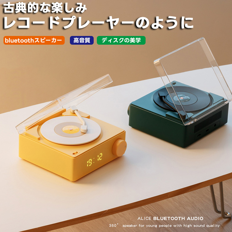 スピーカー レトロレコード風 Bluetooth デジタル時計付き 多機能置き時計 北欧スタイル メモリーカード対応 コンパクト
