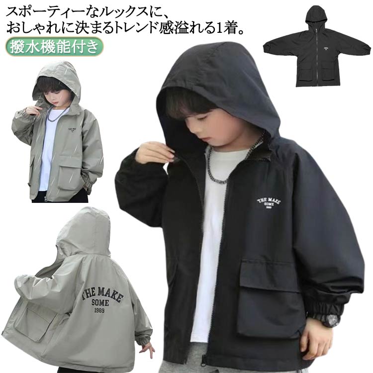 ウインドブレーカー ジャケット 撥水 秋 キッズ 男の子 アウター 子供服 マウンテンパーカー パーカー フード付き 薄手 防風 軽量 ジップアップ 春 おしゃれ ライトアウター 120cm 普段着