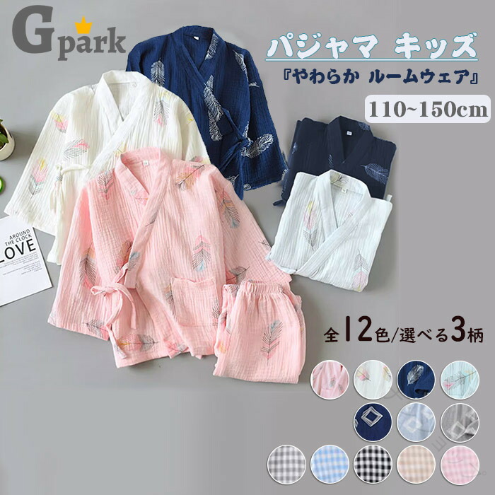 甚平 パジャマ 子供 キッズ ガーゼ 綿100% 柔らかい 肌に優しい 長袖 寝巻き 上下セット 夏 ルームウェア ナイトウェア