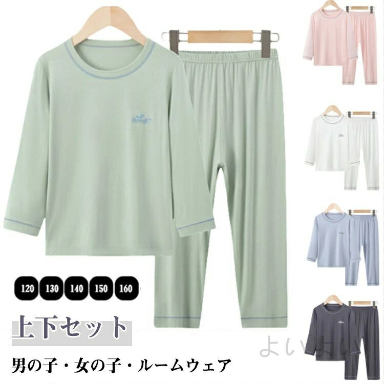 上下セット ロングパンツ 長袖パジャマ モダール生地 Tシャツ 薄手 夏 トップス 通気性 春秋 女の子 おしゃれ かわいい ルームウェア ルームパンツ キッズ