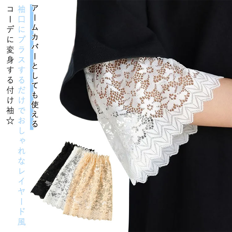 付け袖 レース フリル つけ袖 袖口 レディース つけそで アームカバー レース付け袖 長袖 両腕用 ベルスリーブ フレアスリーブ レイヤード 重ね着風 かわいい フェミニン モノト おしゃれ