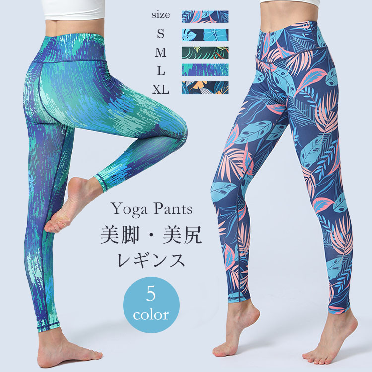 ヨガパンツ レディース レギンス 通気 吸汗速乾 ストレッチ ロング丈 スポーツタイツ ナチュラル 葉 柄パンツ 美脚 脚長 おしゃれ ジム ヨガ フィットネス トレーニング