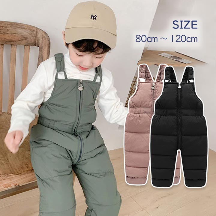 ダウンパンツ!外へのお出かけや雪遊びに大活躍する子供用防寒サロペットです。ベビー服 ピンク ブラック グリーン 80 90 100 110 120 9か月 1歳 2歳 3歳