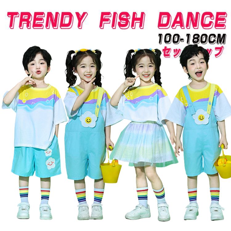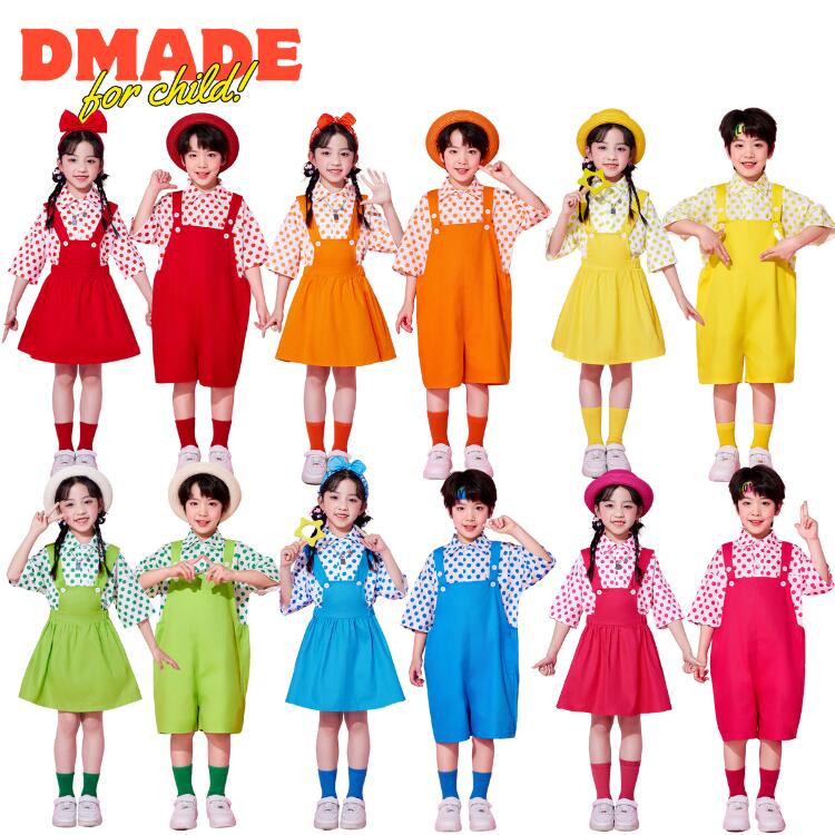 子供用 キッズ オーバーオール サロペット シャツ 男女兼用 団体服 学生服 ジュニア 運動会 幼稚園 卒業式 ステージ 合唱 舞台 子ども チアガール ヒップホップ カラフル お揃い演出服
