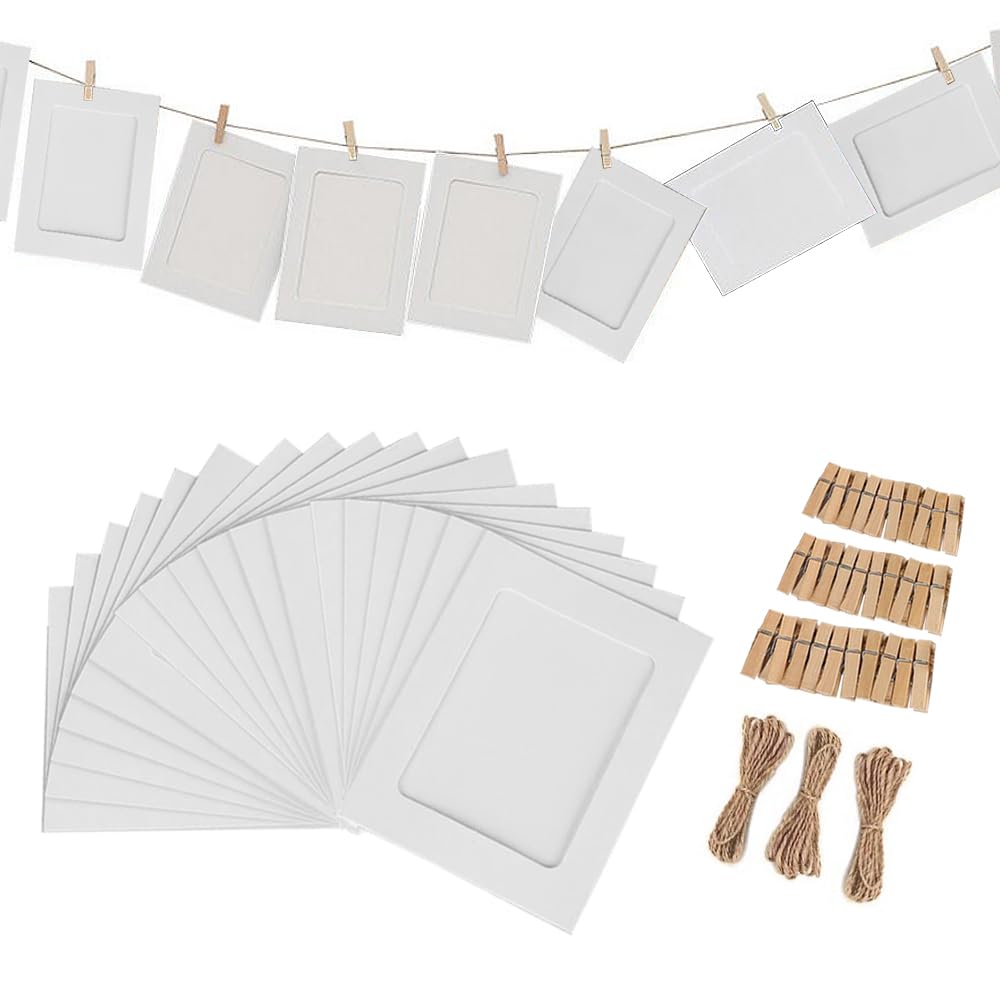 フォトフレーム 30枚セット ピクチャーフレーム 紙製 ペーパー 写真フレーム 写真ガーランド クリップと紐付き 展示ピクチャー 写真立て 写真飾り 壁掛け