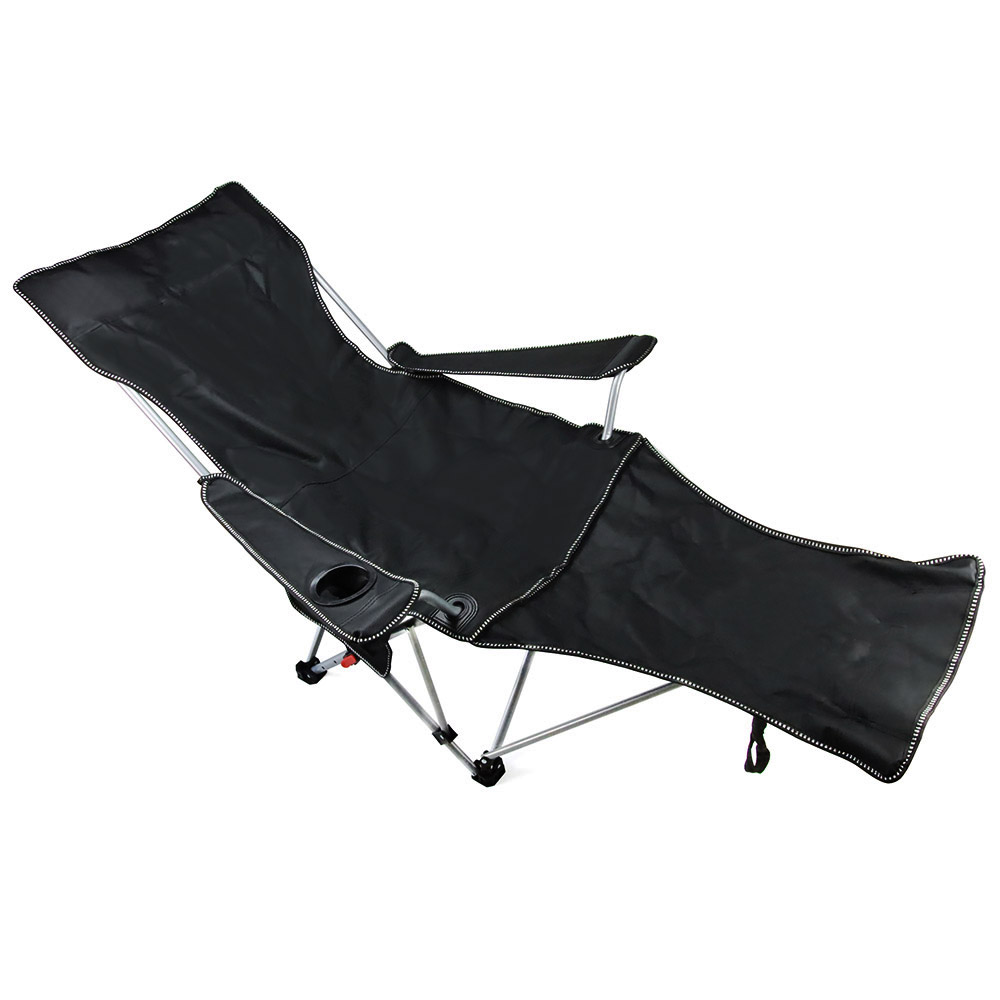 リクライニング折りたたみチェア 足置きオットマン付き4段階調節背もたれ 枕 ドリング収納袋 BBQ キャンプ 昼寝用ブラック TOKUTOYO ビーチ