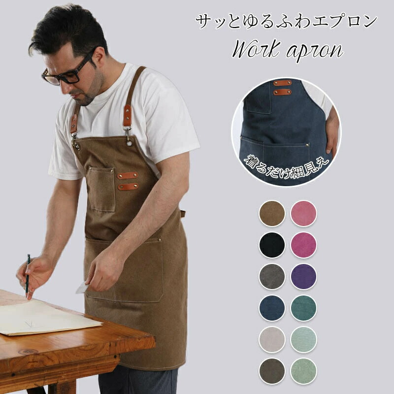 エプロン キャンバス 前掛け カフェエプロン 作業用 職人 フリーサイズ 男女可 12色 美容師 ガーデニング シェフ バー メンズエプロン 大きいサイズ 親子 子供タイプ ストラップ調整可能