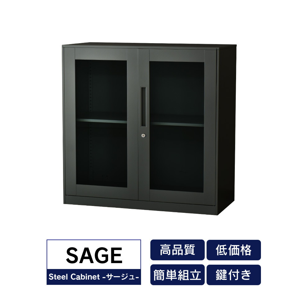 書庫 スチールキャビネット ガラス引き戸 鍵付き サージュ