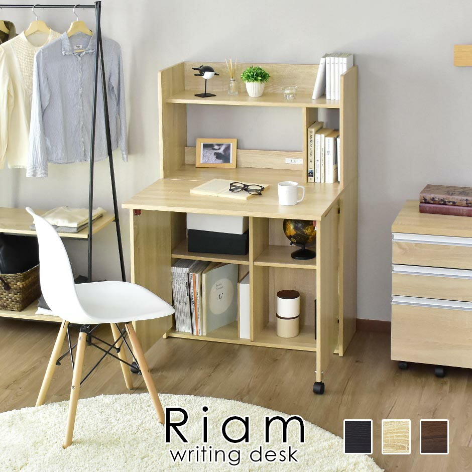 パソコンデスク 折りたたみ ライティングデスク 幅80cm 木製 コンセント2口付 スマホ充電 PCデスク 収納ラック付 机 勉強机 本棚収納 書斎机 ライティングビューロー 学習机 ワークデスク