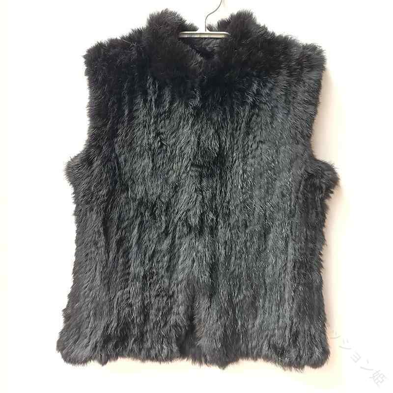 ベスト レディース 春秋 黒 ラビットファー ニット 手編み ノースリーブ リアルファー 毛皮ベスト 快適 欧美風 おしゃれで暖かい高品質ファーベスト 街頭
