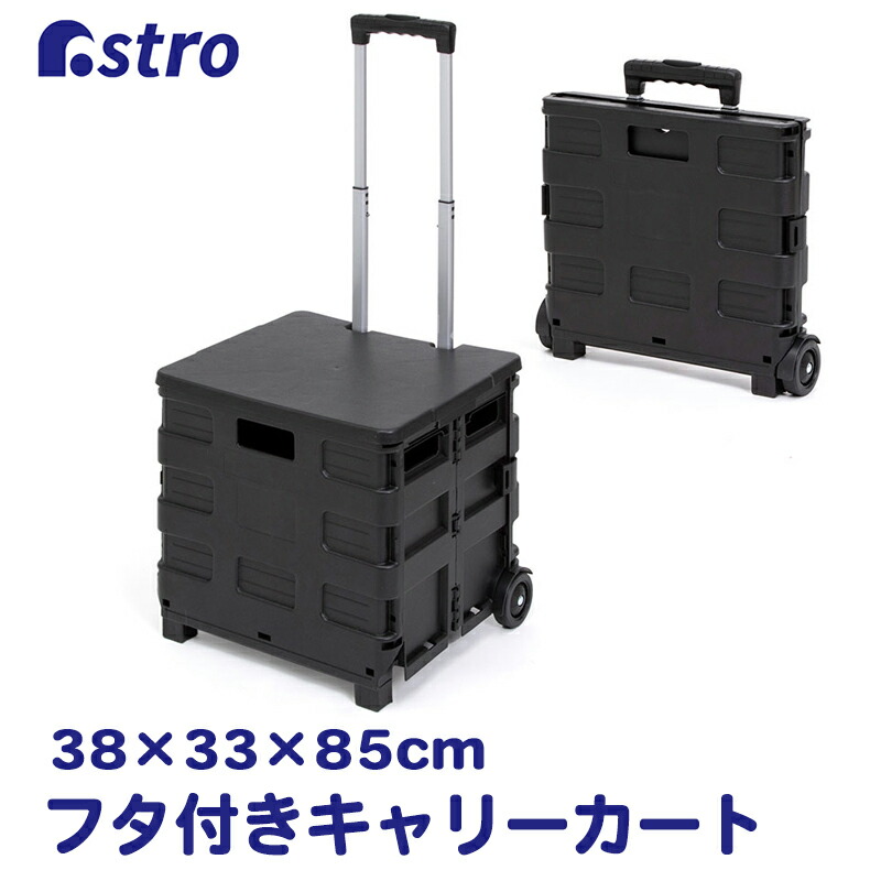 折りたたみ キャリーカート ふた付き ブラック 約幅38×奥行33×高さ85cm 耐荷重約25kg コンテナキャリー 買い物カート ショッピングカート アウトドア 買い出し 公園 アストロ レジャー