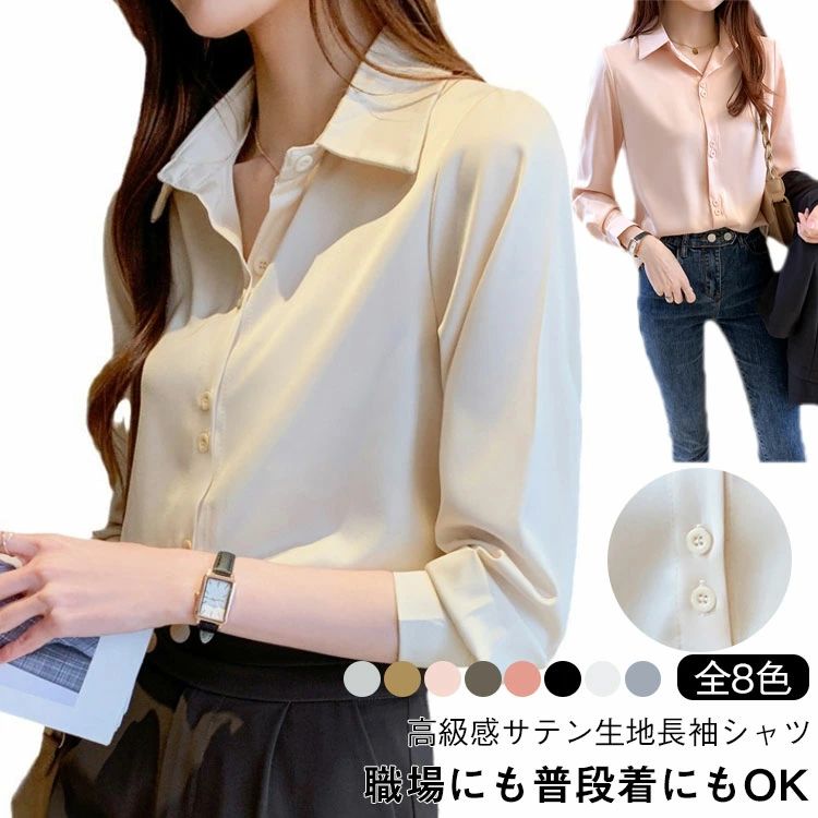 シャツブラウス 長袖ブラウス 光沢感 なめらか フォーマルブラウ