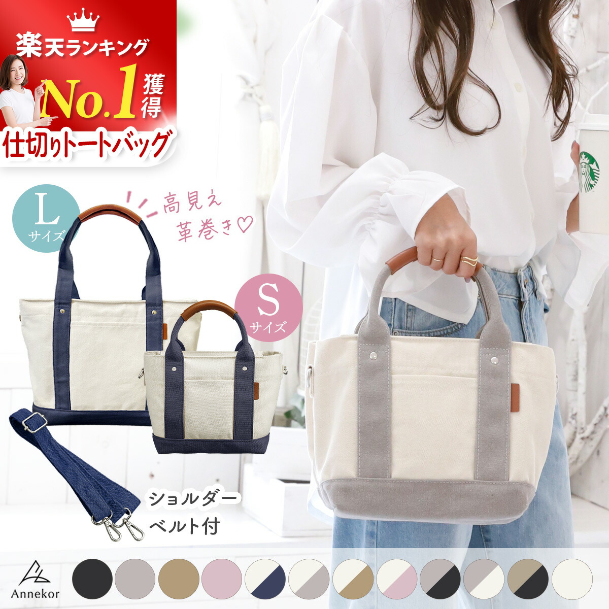 仕切り ミニ トートバッグ ファスナー キャンバス レディース メンズ 2WAY 自立 軽量 小さめ 帆布 ショルダーバッグ おしゃれ ラッピング アンコール A 多機能
