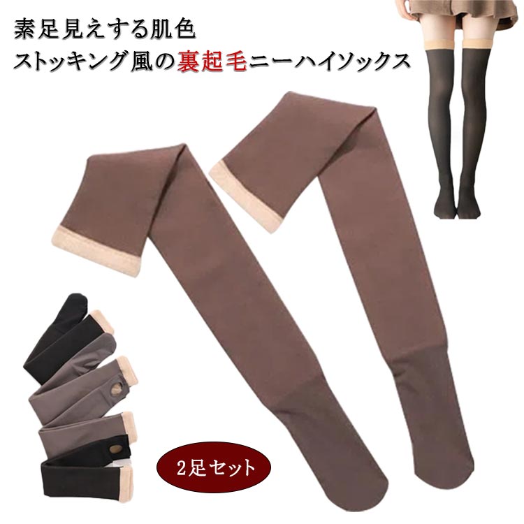 透け 膝上 防寒対策 オーバーニー 裏起毛 ニーハイソックス 冷え取り 透け感 冬物 トレンカ 暖かい靴下 あったかい 通勤 通学 くつ下 タイツ 2足セット 靴下