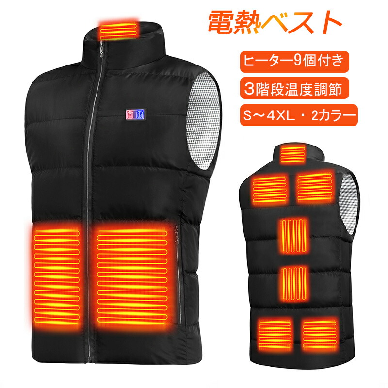 電熱ベスト 電熱ジャケット ヒーターベスト 超軽量 発熱ベスト 温熱ベスト 加熱ベスト ホットベスト ヒーター9枚内蔵 3段階温度調整 防寒服 加熱服 冷え症対策 スリムタイプ 軽量 洗 USB給電式