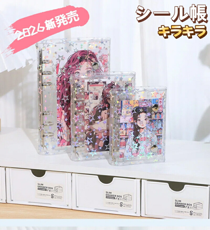 シール帳 透明 星柄 A6 A7 A8 M5サイズ バインダー リフィル×20枚付き クリアバインダー カードポケット クリア 手帳 プリ帳 カードスリーブ 推し活 バインダー型ノート 女の キラキラ