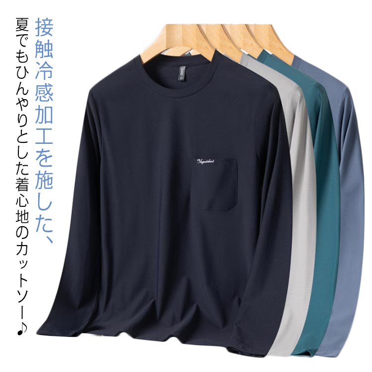吸汗速乾 カットソー クール 長袖tシャツ UVカット 接触冷感 ラッシュガード クルーネック インナー ロンT ストレッチ トップス おしゃれ 夏 涼しい メンズ スポーツウェア
