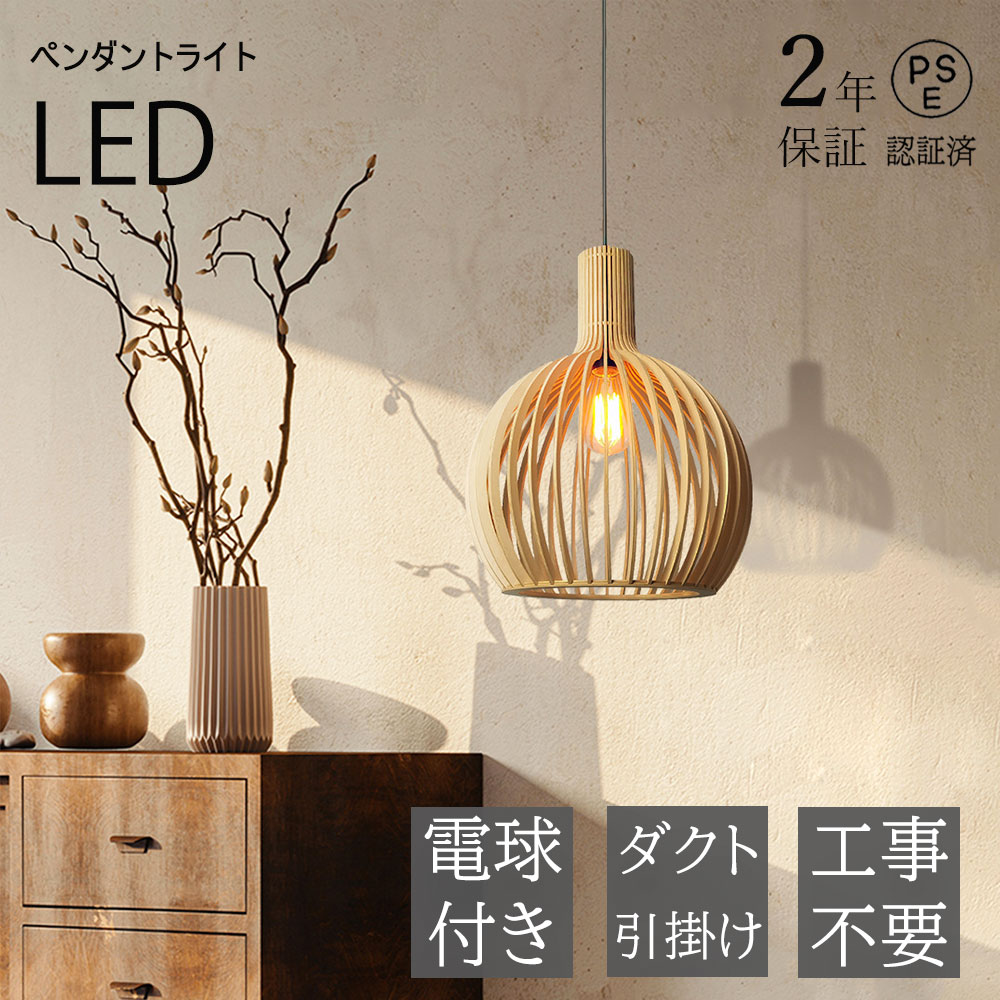 ペンダント 木製 ペンダントライト 木 和風 口金e26 35cm 23cm ナチュラル ダイニング アンティーク led 天井照明 1灯 リビング おしゃれ 照明器具 手作りライト シンプ 吊下げ灯