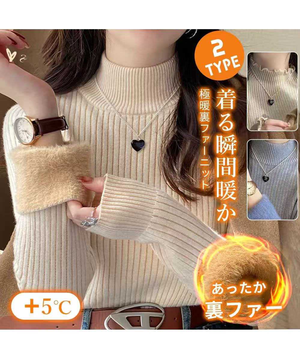 極暖美シルエット裏ファーニット 無地 長袖 ドロップショルダー ニットニットセーター 裏起毛 タートルネック インナー ハイネック 厚手 ボトルネック レディース リブ シンプル ストレッ 裏ポア長袖