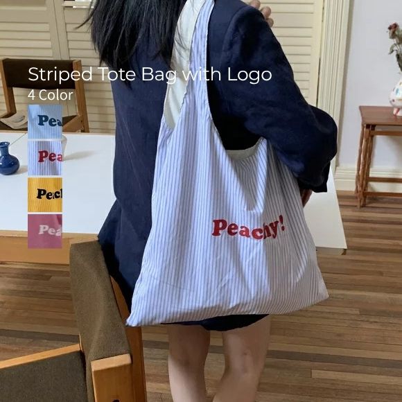 シンプルながらも存在感を放つストライプ柄英字ロゴトートバッグ。爽やかなストライプ柄とスタイリッシュな英字ロゴがアクセント。